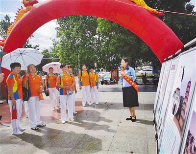 13日是2020年“文化和自然遗产日”,龙岩博物馆在街心广场举办“闽西塔文化展”和红色节目表演,营造了保护文化遗产的良好氛围,旨在提高人民群众对文化遗产保护重要性的认识,动员市民共同参与、关注和保护文化遗产,增强文化遗产保护意识。图为工作人员在向市民介绍闽西塔文化。