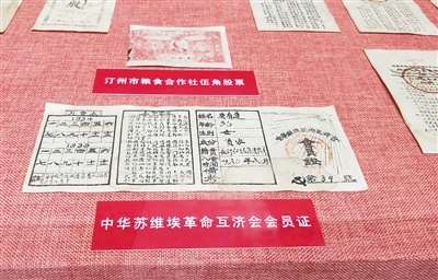 长汀县博物馆是全国重点文物保护单位,馆内设有“汀州客家博物馆陈列展览”、“长汀革命历史陈列”、“瞿秋白被囚处”、“汀州试院旧址”和唐代古柏等参观游览内容,每年都吸引着众多海内外游客参观。图为陈列的“中华苏维埃革命互济会会员证”等红色文物。
