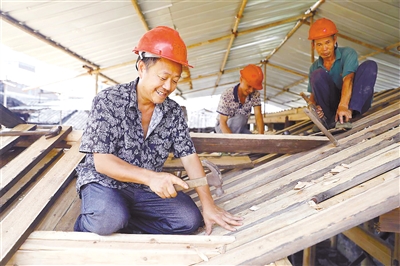 连城县庙前镇筹资170多万元,维修县级文物保护单位、位于该镇庙上村杉树下江一真故居泰兴堂,目前主体工程基本完工。图为古建筑修复施工作业场面。 记者 傅长盛摄