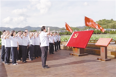 6月30日,在建党99周年之际,新罗区税务局组织党员干部代表专程来到上杭古田、蛟洋和连城新泉等地,开展“初心之旅”主题党日活动,为建设新新罗、全力推动高质量发展超越作出积极贡献。图为党员干部重温入党誓词。