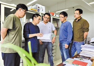 张维元与学院老师在交流教学心得,分享教学经验。如今,这种方式已成常态。