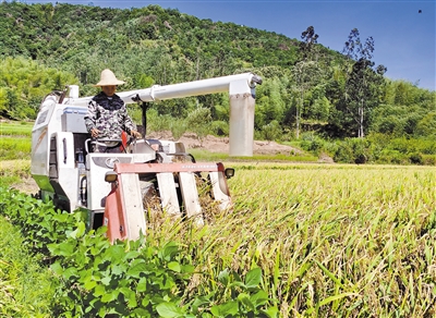 7月25日,在连城县北团镇蕉坑村,全自动收割机在金黄的稻田里来回穿梭。连城今年早稻种植面积6.55万亩,夏粮再获丰收,预计夏粮产量2.7万吨左右。目前,全县29支机收服务队在各乡村开展早稻抢收工作,高达96%的机收率让早稻从“丰收在望”变成“颗粒归仓”。 通讯员 黄水林 张铃 马彪 摄