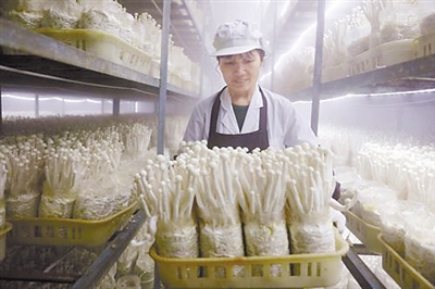 昨日,上杭县五丰食用菌种植专业合作社生产基地,员工在收真姬菇。该合作社是央企华润集团为支持革命老区上杭县发展现代农业而投资成立,采用“公司+合作社+农户”的运作模式,由公司投资建设工厂化食用菌种植项目,为建档立卡贫困户提供黑皮鸡枞、真姬菇菌包等15万袋,同时,在工厂化食用菌种植项目中优先聘用贫困户劳动力,为30户家庭每户增加年收入2.5万元。 记者 郭亦斌 通讯员 林斯乾 摄