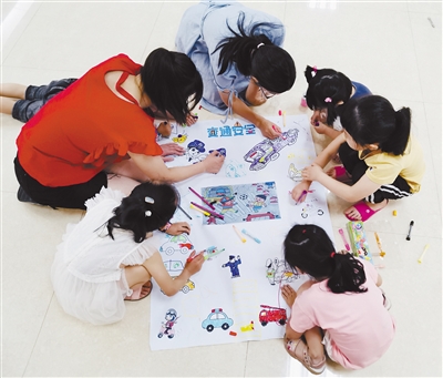 面对暑期学生出行增多、容易引发交通事故的情况,为切实提高辖区学生的交通安全意识,近日,新罗区西城街道莲新社区团工委举办交通安全绘画活动,邀请孩子们勾勒出交通安全图案并涂色,并大声朗读“酒后不开车”“走斑马线”“红灯停绿灯行”等安全标语,让安全意识扎根于孩子幼小的心灵。