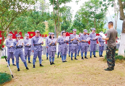 日前,在3位副总裁的带领下,阿里巴巴集团54位高层管理人员前来古田干部学院开展为期2天的学习。此次培训以专题教学、现场教学、红军服体验教学、红歌教学等形式进行,通过全方位、多角度、深层次的学习,学员们更加深刻地理解了“思想建党、政治建军”的古田会议精神内涵。图为学员们在现场学习培训。
