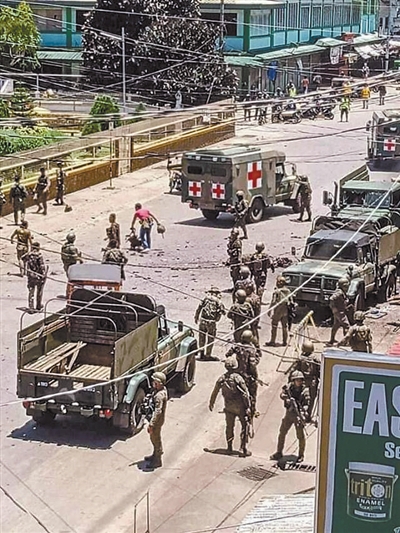 这是8月24日在菲律宾南部苏禄省拍摄的一起爆炸事件现场。菲律宾南部苏禄省24日发生连环爆炸,截至目前已造成至少5人死亡,4人受伤。