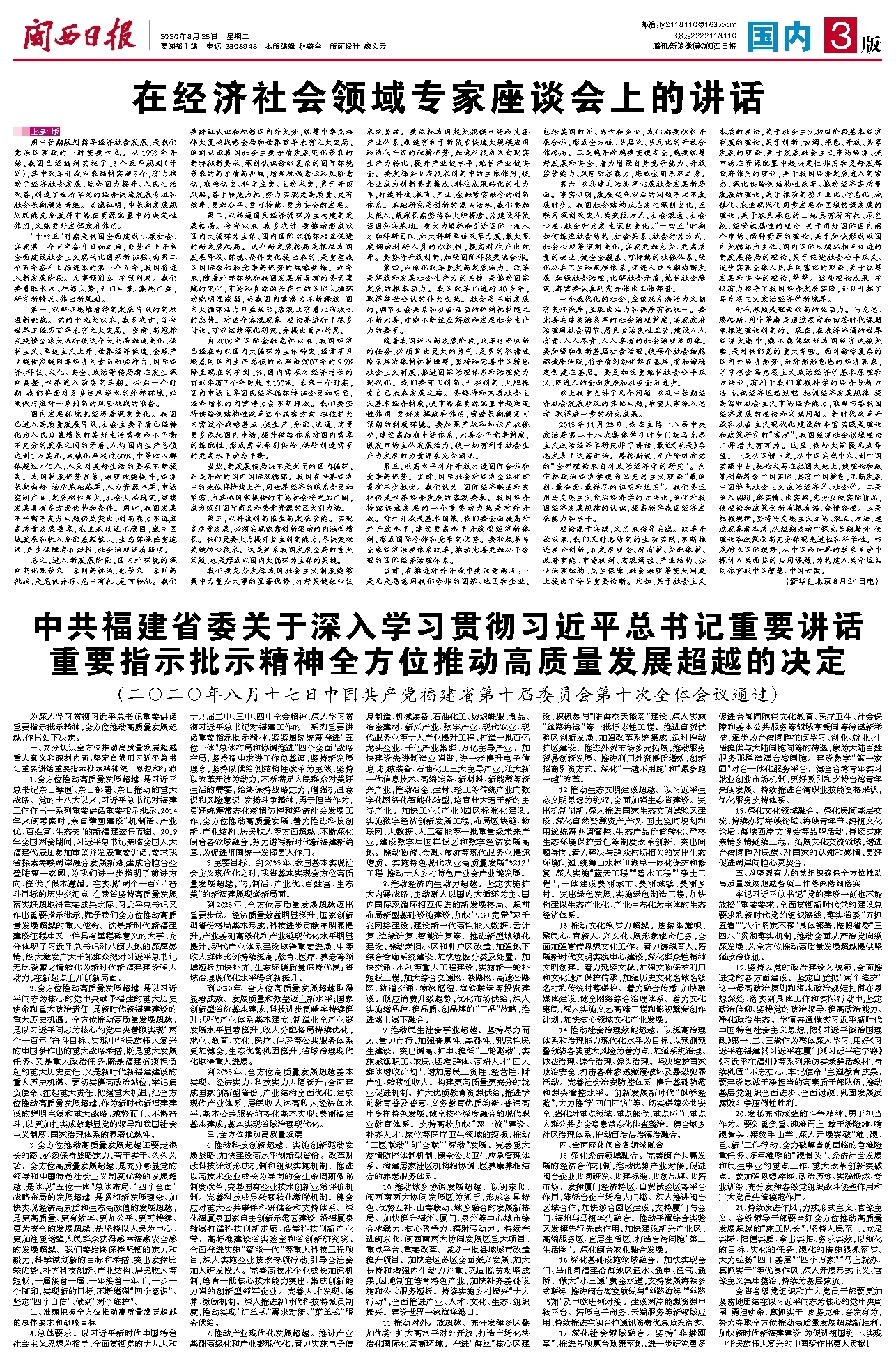 中共福建省委关于深入学习贯彻习近平总书记重要讲话重要指示批示精神全方位推动高质量发展超越的决定