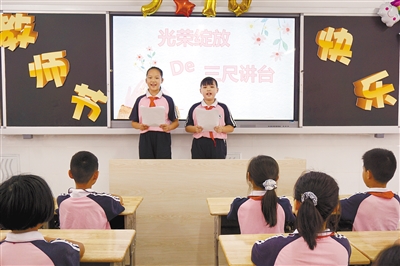 为了进一步弘扬尊师重教的良好风尚,近日,龙岩师范附属小学开展庆祝教师节系列活动。图为该校五年级(2)班召开“光荣绽放的三尺讲台”教师节感恩教育主题班会。 记者 赖菲 摄