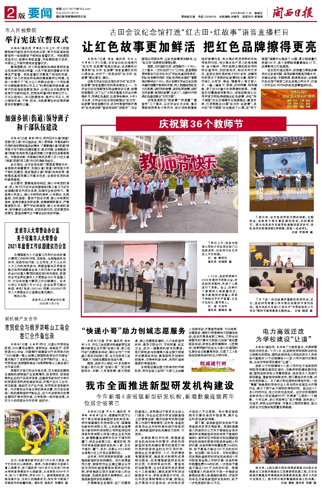 本报讯(记者 罗玉文 通讯员 邱孝聪 林晓丽)近日,福建省科技厅公布了第五批省级新型研发机构名单,我市福建德尔科技有限公司、福建强纶新材料有限公司、上杭县紫金佳博电子新材料科技有限公司和经纬空间信息科技有限公司等4家企业名列其中,新增数量连续两年仅次于福州和厦门,排名全省第三位。截至目前,我市共有省级新型研发机构11家,仅次于福州、厦门、泉州,总数从2018年的全省第六位上升至全省第四位。