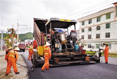 连日来,上杭公路分局加快推进国道358线古田高速出口至蛟洋高速出口沥青路面改造工程,正在实施蛟洋集镇至坪埔路段的沥青路面改造,预计9月底可全线完工。图为昨日蛟洋集镇路段施工的场景。 记者 黄俊 通讯员 郑鹏 摄