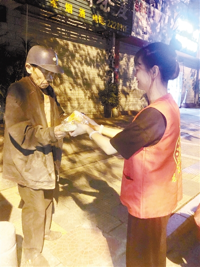 龙岩“面包人”行动队为困难群体送上面包。“面包人”行动项目始于2016年10月,截至目前,已吸引志愿者近千人、爱心商家36家,参与公益活动1000余天。