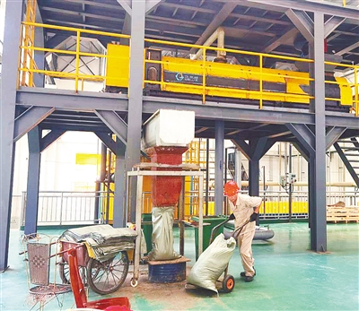 近日,在龙岩市餐厨垃圾处理厂,工作人员正在打包餐厨垃圾无害化处置后产生的尾渣,尾渣可用作有机肥。