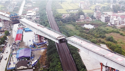 9月16日,黄黄铁路范家岗特大桥跨京九铁路连续梁正在进行转体作业(无人机照片)。当日,由中铁四局承建的黄(冈)黄(梅)铁路范家岗特大桥跨京九铁路连续梁成功转体。施工方在没有列车通行的50分钟“天窗点”内,精准完成作业,在京九铁路上方实现同步对接,打通了黄黄铁路全线架梁、铺轨通道。黄黄铁路全长125.12公里,设计时速350公里,是我国“八纵八横”高速铁路“京港(台)通道”与武汉至杭州客运通道的组成部分。