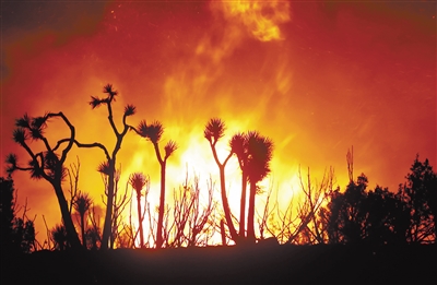 这是9月18日在美国加利福尼亚州洛杉矶县拍摄的“山猫”山火。26处大型山火正在加利福尼亚州南北肆虐,约1.4万平方公里的林地化为焦土。 新华社 发
