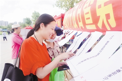 21日下午,龙岩市统计局、国家统计局龙岩调查队、新罗区统计局在龙津湖文化广场开展第十一届“中国统计开放日”现场宣传活动。活动围绕“大国点名 没你不行”主题,通过派发宣传单、展板展示、知识竞答和猜谜等系列活动,向市民宣传人口普查知识,吸引了众多市民参加。图为市民在参加知识竞答活动。