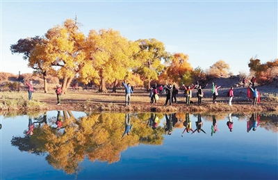 胡杨林景观分为较佳观赏期和最佳观赏期,黄色叶片比例达到50%以上时,进入较佳观赏期;黄色叶片比例达到80%以上时,进入最佳观赏期;落叶比例达到80%以上时观赏期结束。 (新华网)