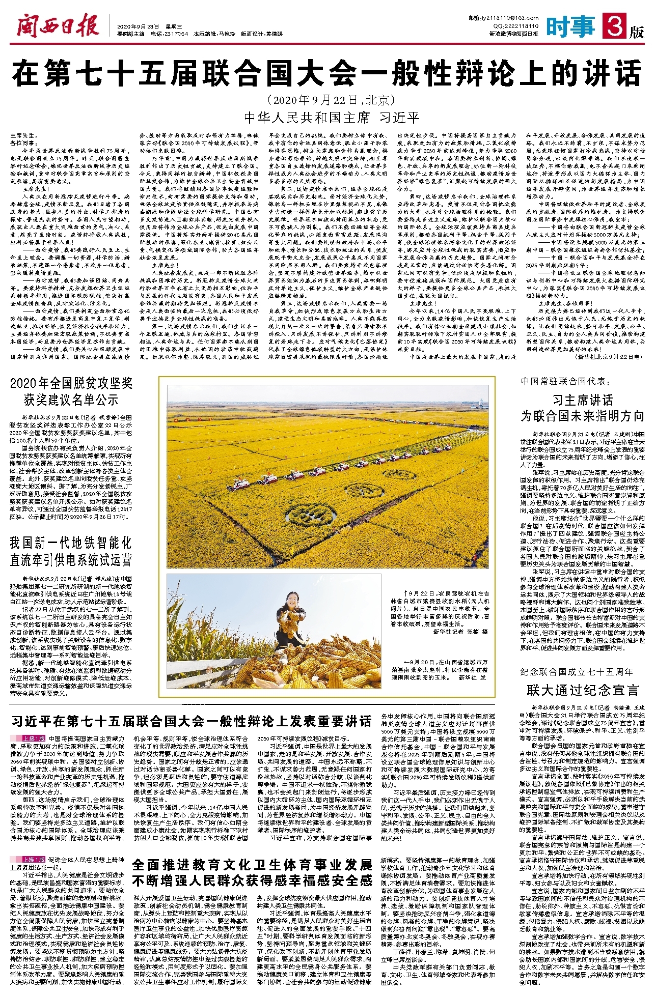 习近平在第七十五届联合国大会一般性辩论上发表重要讲话