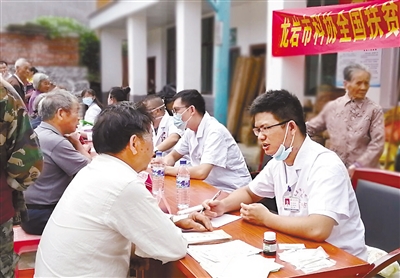 在中秋节、“10·17扶贫日”即将到来之际,龙岩市科学技术协会联合市第一医院、第二医院、中医院、疾控中心等单位医务人员及志愿者前往连城县北团镇到湖村开展慰问活动,为当地群众义诊,向他们宣传健康知识。市科协挂钩干部还到10多户贫困户家中走访慰问,了解他们近期遇到的困难和问题,并设法帮助解决。 记者 王耀辉 通讯员 梁伟坚 摄