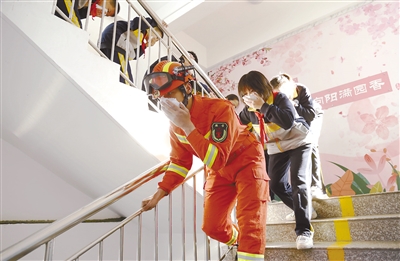 11月9日,河北省邢台市南园路小学学生在消防员的指导下进行防火逃生演练。当日是全国消防日,各地纷纷开展消防安全宣传活动,提高人们的消防安全意识与应急避险能力。 新华社 发