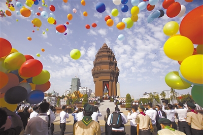 11月9日,在柬埔寨金边,人们在独立日庆祝活动上放飞气球。在柬埔寨已故太皇西哈努克的领导下,柬埔寨人民于1953年11月9日摆脱了法国近一百年的殖民统治,赢得了国家的独立。 新华社 发