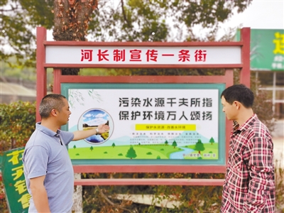 近日,连城县朋口镇在集镇沿街设置“河长制宣传一条街”宣传栏,营造全社会共防、共治、共享的良好氛围,进一步落实绿色生态理念、推进生态文明建设,全面推行河长制,提升群众对河长制工作的认识、对水环境的保护意识。图为镇河长办工作人员在向村民介绍河长制有关内容。 记者 罗焕辉 通讯员 罗澄雁 摄