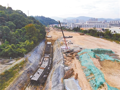 图为16日管廊施工中的龙岩大道南段二期项目。