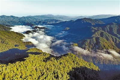 连绵不绝的云雾在梅花山大山深处缭绕