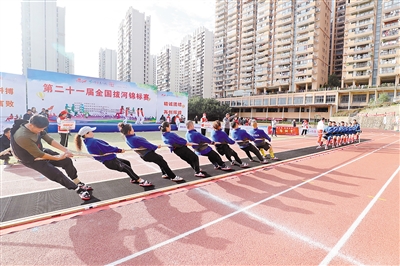 11月28日至29日,第21届全国拔河锦标赛在上杭县举行,来自上海、浙江、广东、福建等全国各地21支代表队380多人参加了比赛。经过2天共145场激烈角逐,鞍钢众元队包揽锦标组女子500公斤级、540公斤级、男子600公斤级、640公斤级和混合600公斤级冠军;浙江警察学院拔河一队则包揽了高校组混合600公斤级和混合900公斤级冠军;山钢股份获得男子680公斤级冠军。全国拔河锦标赛是中国拔河最高水平赛事,每两年为世界拔河锦标赛输送优秀运动队。图为比赛现场。 通讯员 林斯乾 王如强 摄