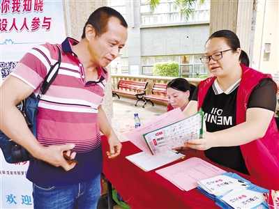 11月19日,新罗区南城街道小溪社区新时代文明实践站志愿者及巾帼志愿者开展系列宣传活动。活动现场,志愿者通过现场讲解、发放宣传资料、悬挂横幅等形式,向居民普及平安创建、禁毒禁赌、防网络诈骗、扫黑除恶、消防安全、交通安全、垃圾分类等各类与居民群众日常生活密切相关的安全防范知识。图为活动现场。记者 罗玉文 通讯员 林利琴 摄