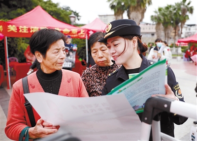 昨日是第七个国家宪法日,市和新罗区全面依法治市办、司法局联合组织市、区136家单位在龙岩中心城区街心广场开展宪法日专场宣传活动,市领导冯添桂、肖进才、赖双奇到场指导。同日,各县(市、区)均围绕“深入学习宣传习近平法治思想,大力弘扬宪法精神”主题,开展宪法专题宣传活动。图为城市管理部门工作人员向群众宣传的场景。