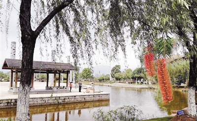 近日,两位老人在连城县城市公园用智能手机拍摄风景发抖音微信朋友圈。受疫情影响,连城县许多老人坚持少外出,早睡早起,到城市公园、文化公园、观景路、冠豸山和石门湖等景点散步、打太极拳,在家门口旅游健身成新时尚。图为城市公园美景。