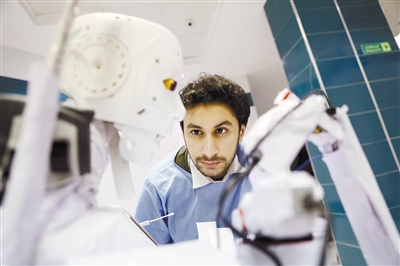 12月3日,在埃及坦塔的一所医院,马哈茂德·科米在Cira 03机器人附近工作。