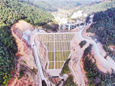 市重点民生项目上杭县锦绣水库位于白砂镇岭背村,是以灌溉为主,兼顾下游群众生活供水的民生项目,设计总库容227.27万立方米。目前该项目已经建成,正待水库中的龙龙铁路锦绣水库大桥建成后蓄水,届时将使9513亩农田受益,并向灌区沿线烟农及周边部分村庄提供1000吨/日灌水量。图为昨日锦绣水库大坝壮观场面。
