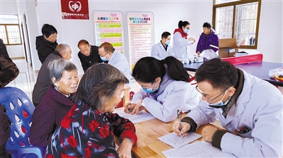近日,汀州医院组织党员医学专家来到涂坊卫生院和革命基点村涂坊镇元坑村等地,开展服务基层义诊宣教活动。图为义诊现场。记者 罗玉文 通讯员 陈炳林 吕红梅 摄