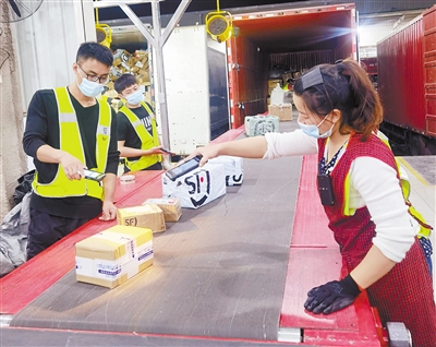 日前,位于龙岩公路港的快递物流园已全部完成施工,今年10月起已有多家快递公司入驻。公路港快递物流园的投用,使我市今年的“双11”“双12”快递分拣大大提速,提高了群众满意度。图为近日,在快递物流园的顺丰快递分拣中心,工作人员正在扫描快件。 记者 曾俊钦 摄