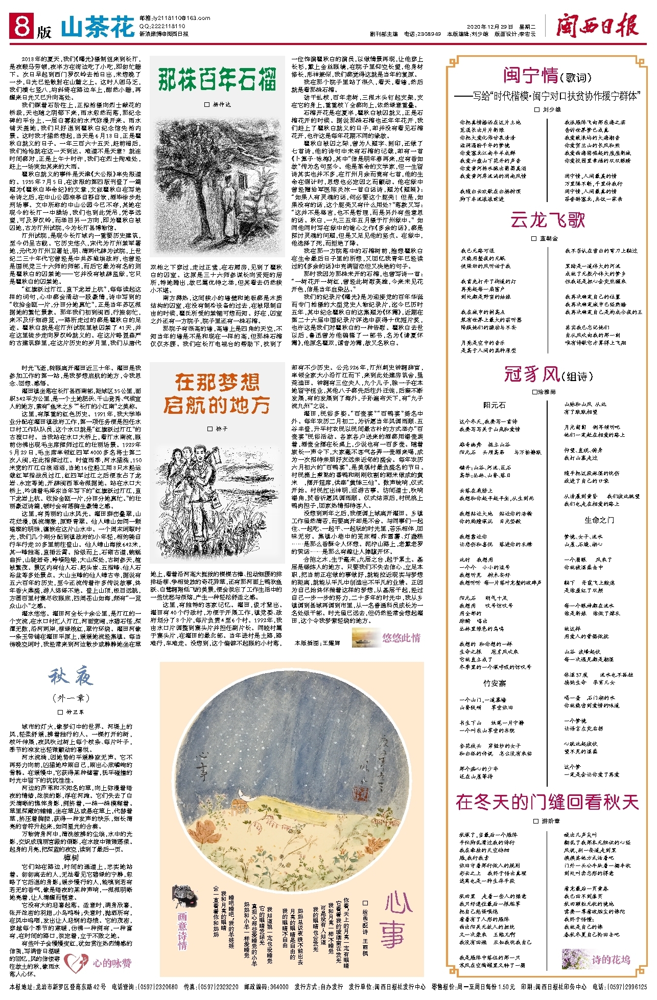没想到两年之后,我便调上城离开濯田。乡镇工作虽然清苦,而要离开却是不舍。与同事们一起住、一起吃、一起干、一起玩的时光里,苦乐相伴,回味无穷。集镇小巷中的笼床糈、炸雪薯、灯盏糕……是那么香酥令人怀想。泥泞山路上,老戴老罗的笑话……是那么有趣让人捧腹开怀。
