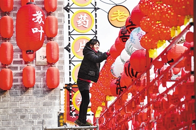 元旦临近,江西省樟树市的大街小巷挂起中国结、红灯笼等装饰品,处处洋溢着节日气氛。 (新华网)