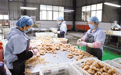 上杭县蛟洋镇大力实施企业助力脱贫“手拉手”活动,深入开展“村企共建”活动,形成“一村一企”“一企多村”的帮扶共建模式。该公司通过实施生姜种植激励性扶贫项目,扶持了10余户贫困户种植生姜和5户贫困户就业(资料图)。记者 郭亦斌 摄