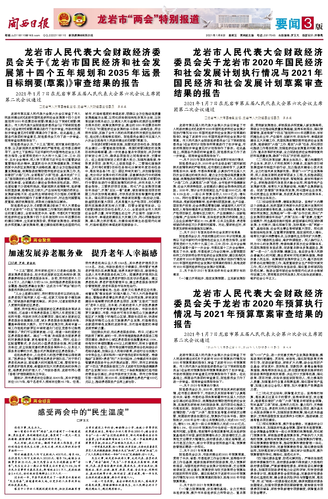 龙岩市人民代表大会财政经济委员会关于龙岩市2020年预算执行情况与2021年预算草案审查结果的报告