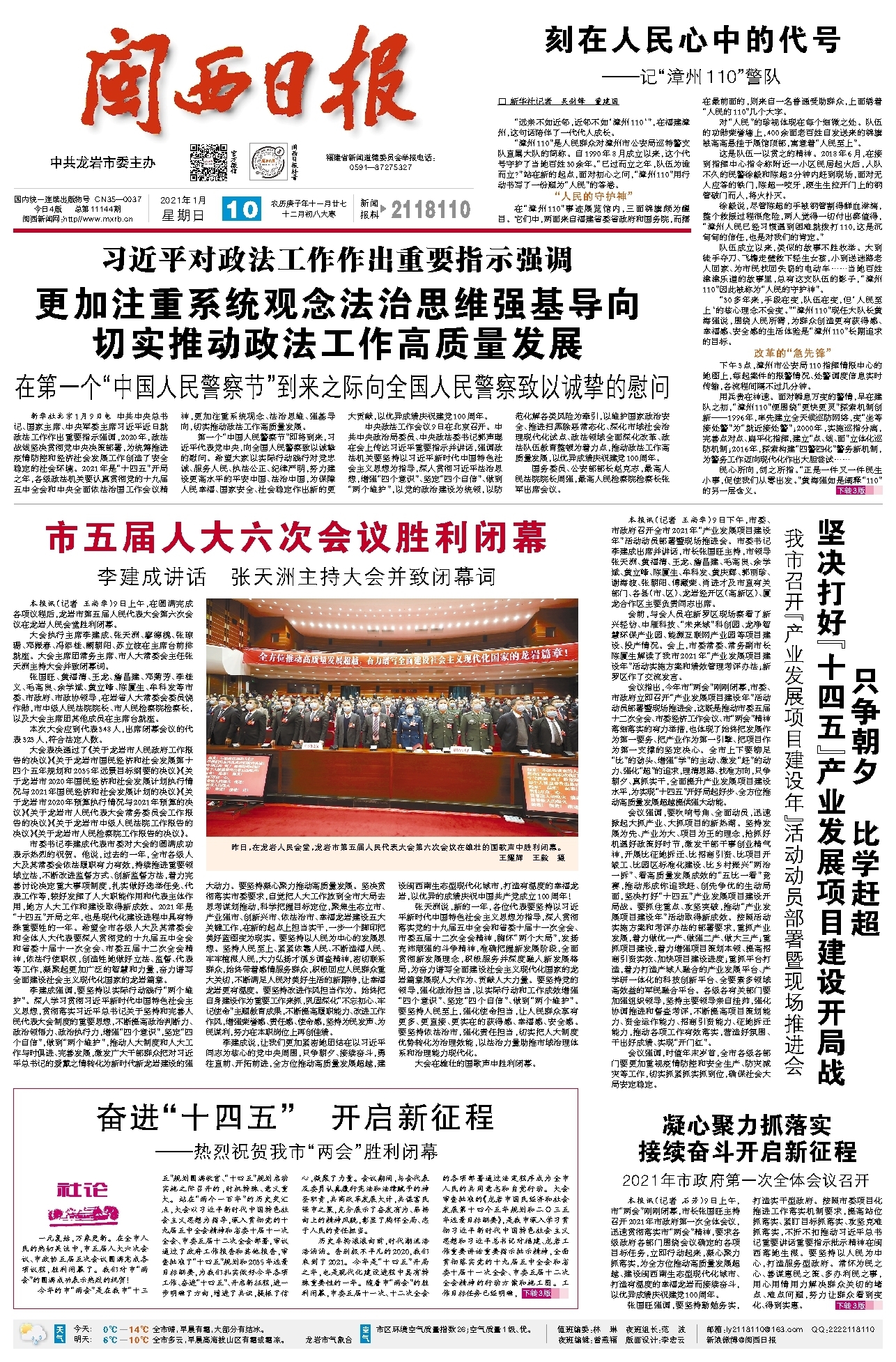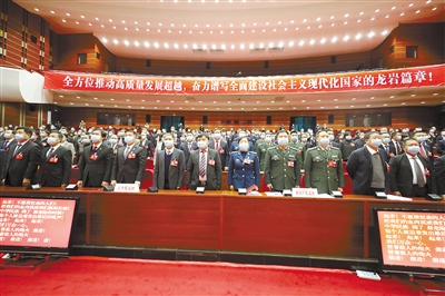 昨日,在龙岩人民会堂,龙岩市第五届人民代表大会第六次会议在雄壮的国歌声中胜利闭幕。