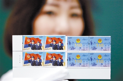 1月10日,一名集邮爱好者在中国邮政集团公司山东省枣庄市分公司展示《中国人民警察节》纪念邮票。当日是首个中国人民警察节,中国邮政发行《中国人民警察节》纪念邮票一套2枚,名称分别为“忠诚使命”和“人民至上”,全套邮票面值2.40元。