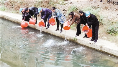 日前,连城县姑田镇为巩固河长制工作取得的水清、河畅、岸绿、景美的治理成效,县水技站联合姑田镇河长办,在该镇元甲溪分河段放流鱼苗增殖6万余尾,以发挥净化水质作用,助力恢复生态河道。图为放流鱼苗增殖场景。 通讯员 周宗胜 江瑞秋 摄