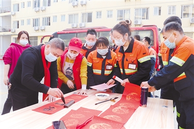 1月25日,龙岩市总工会、上杭县总工会走进紫金矿业集团股份有限公司紫金山金铜矿及上杭县稔田镇移民文化广场开展“幸福龙岩·福送万家”“尊法守法·携手筑梦”服务农民工志愿服务活动。活动中走访慰问了劳模代表、省五一劳动奖章获得者代表及贫困户代表,为他们送去工会“娘家人”的温暖。当日共送出530副春联,200张“福”字,发放书籍、宣传手册等材料600余份,接受咨询20余次。图为活动现场。