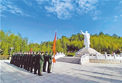 武警龙岩支队新兵下连的第一站是向毛主席塑像敬献花篮。 薛志伟 摄