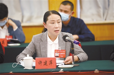 许建萍代表:建议省政府加强博物馆的建设和发展;开通福州至长汀动车专列;省两院持续保持对黑恶势力的打击力度。 记者 蓝明丰 石芳 摄