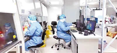 昨日,在位于市第一医院的龙岩城市核酸检测基地内,工作人员正在进行核酸提取操作。龙岩城市核酸检测基地于1月8日建成并投入使用,设有两个PCR实验室、核酸提取室、高压灭菌室等,配备了世界先进水平的专用设备,各专业区域设置、流程、安全性等均符合规范要求,日检测量最高可达30万份。