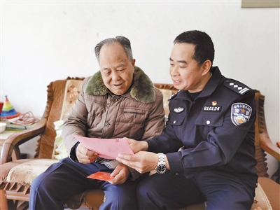 近日,龙岩市公安局新罗分局陆续开展春节走访慰问离退休老同志“五个一”活动,根据疫情防控工作实际,对党员开展“送党课上门”和送理论上门,征求了老同志对分局工作的建议、意见。图为1月28日,民警慰问退休老民警时的情景。 通讯员 张筱晨 张国娟 摄