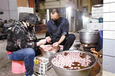 近日,位于上杭城区上吴新路的邓晓燕一家更加忙碌起来。凌晨4点多,外出采购的婆婆回到家,预定的鱼、肉也送上门来了。这时,天还没亮,邓晓燕一家就陆续起来了。