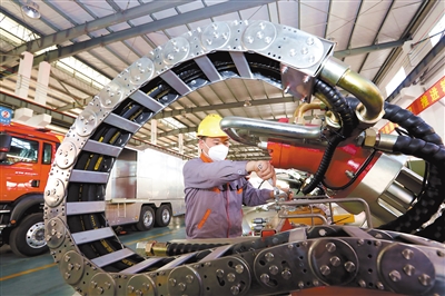 14日,记者在福建侨龙应急装备股份有限公司结构车间看到,工人正在加紧进行车厢制作,调试、总装等各个工序有条不紊地进行。为全力做好疫情防控工作,减少人员流动和在春节期间的人员集聚,侨龙公司动员20多个外省籍员工就地过年,正月初二各车间就实现全员开工生产。到目前为止,该公司已有在手订单2亿元,第一季度预计实现产值1.1亿,同比去年增长55%,实现开门红。图为工人正在组装“小履带”。