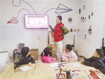 为使广大少年儿童度过一个健康、安全、温暖的寒假,近日,新罗区南城街道莲东社区妇联携手社区新时代文明实践站、社区妇女儿童之家教学点“物色艺术”工作室,组织社区巾帼志愿者、党员志愿者、社区计生家庭共同开展“把爱带回家”活动,通过送家风故事、送家教活动、送法治安全和送社区关爱,让孩子们度过一个有意义的寒假。图为志愿者以简单活泼的课堂形式向孩子们讲授安全知识。 记者 罗玉文 通讯员 陈瑶 摄
